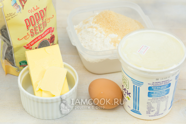 Для приготовления песочного печенья с маком подготовьте продукты по списку.