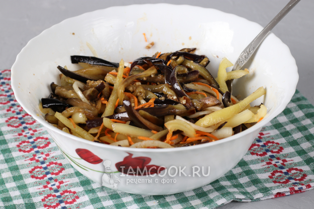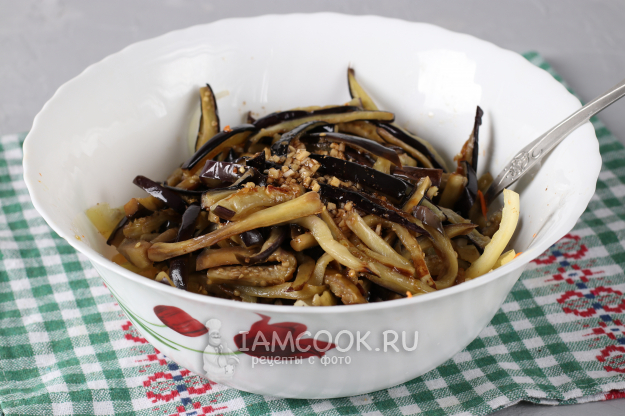 Для приготовления салата из баклажанов по-корейски подготовить из списка необходимые ингредиенты.