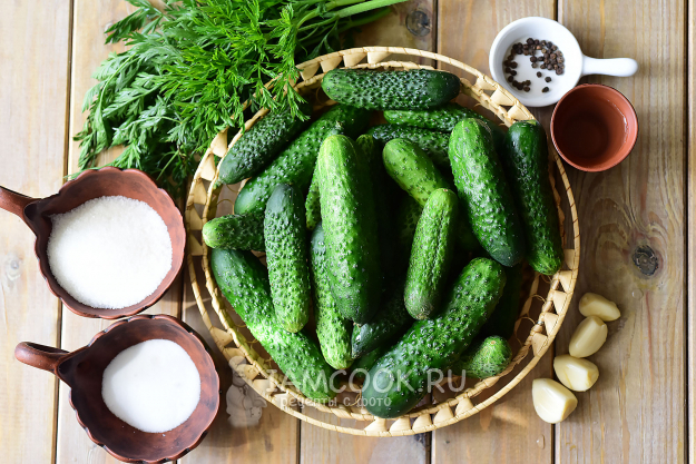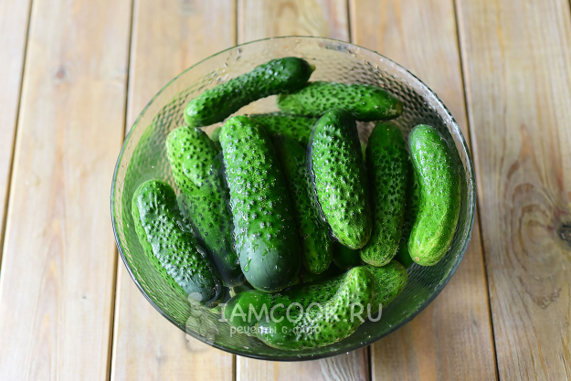 Огурцы выложим в глубокую миску и зальем холодной водой на 2 часа. Простерилизуем банки и крышки удобным для вас способом. Мне наиболее удобно стерилизовать литровые банки в течение 15 минут в духовом шкафу при температуре 100 градусов. Крышки очень удобно прокипятить в кастрюльке на плите в течение 10 минут.