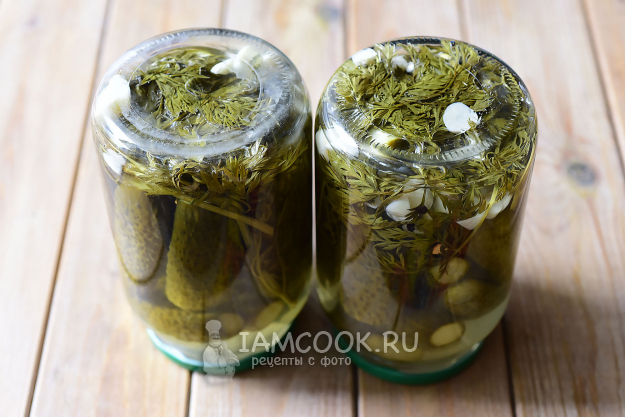 Затем банки с огурчиками извлечем из кастрюли, плотно укупорим крышками (я просто закрутила руками винтовые крышки), перевернем вверх дном, укутаем теплым одеялом, оставим медленно охлаждаться на ночь.