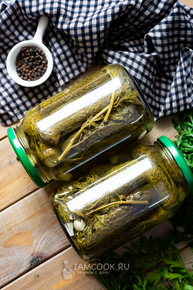 Утром готовую заготовку отправим на хранение в кладовую - маринованные огурцы с морковной ботвой на зиму готовы. Приятных консерваций!