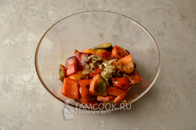 Полейте заливкой овощи.