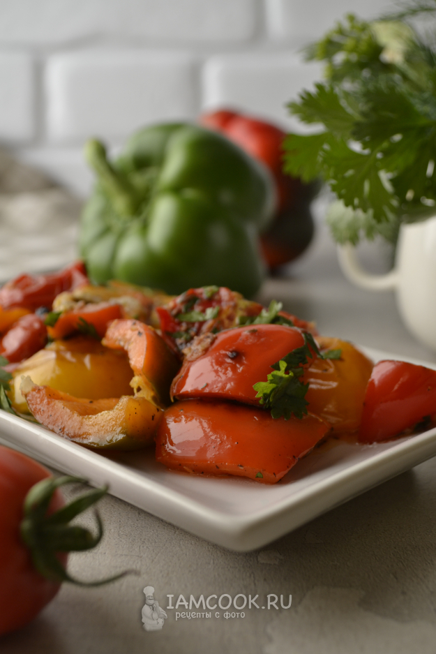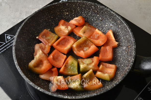 Добавьте перец к помидорам.