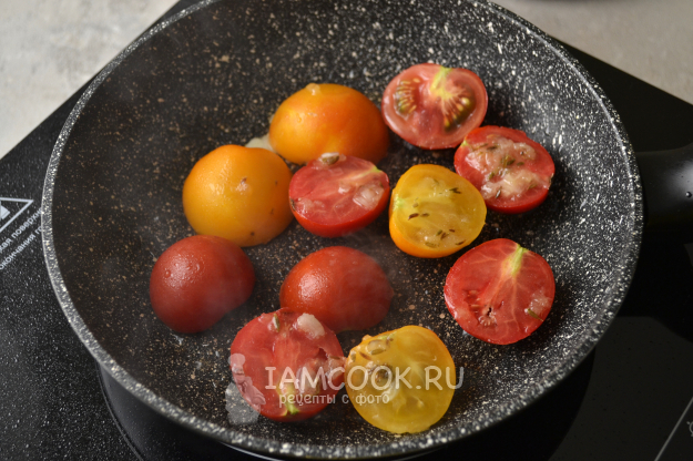 Разогрейте сковороду с 1 ст.л. масла и обжарьте на сильном огне помидоры в течение 1-2 минут с обеих сторон.