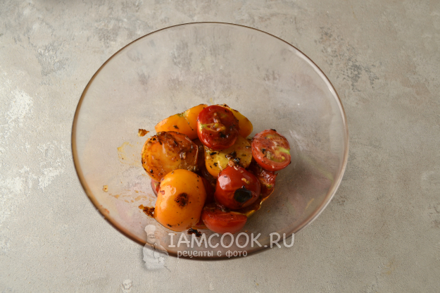 Переложите помидоры со сковороды в салатник.