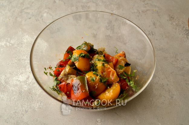 Аккуратно перемешайте салат. Для полного раскрытия вкуса дайте салату настояться в течение 1 часа в холодильнике.