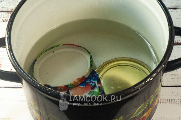 Простерилизуем банки и крышки. Крышки поместим в воду в кастрюлю.