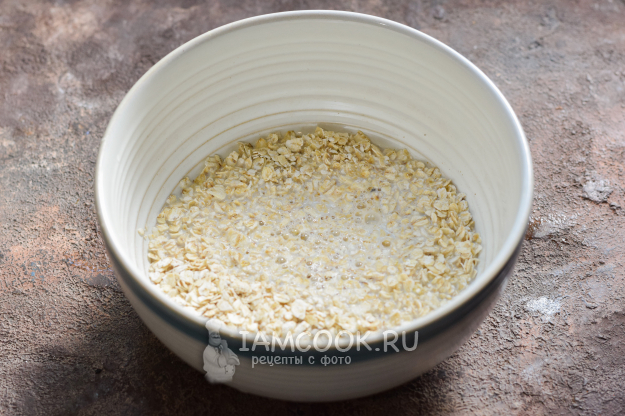 Овсянку всыпать в миску и добавить молоко, перемешать.