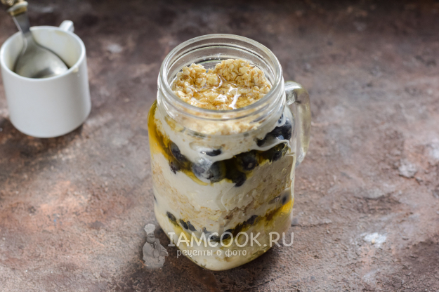 После повторить слои - творог, ягоды, мед, овсянка. Баночку прикрыть крышкой и поставить в холодильник, а утром можно наслаждаться вкусной и аппетитной ленивой овсянкой с творогом в банке. Обязательно пробуйте.
