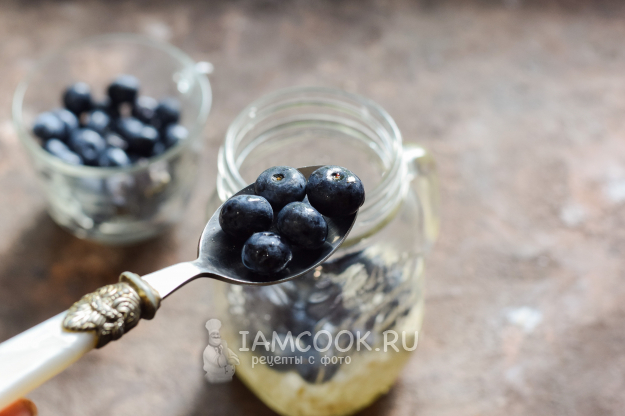 Сразу подготовить банку: можно использовать красивую порционную баночку - если нет времени утром позавтракать, ее можно взять с собой на работу. Итак, половину творога выложить в банку первым слоем.