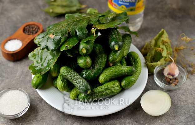 Маринованные огурцы с дубовыми листьями на зиму готовы.