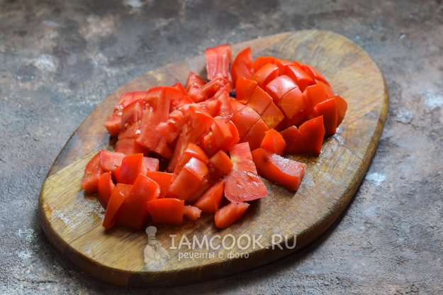 Помидоры вымыть и просушить, после нарезать помидоры небольшими кубиками.