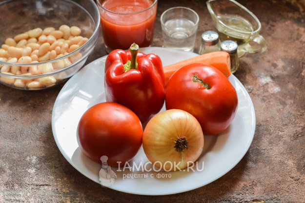 Возьмите все продукты для приготовления греческого салата с фасолью на зиму по списку.