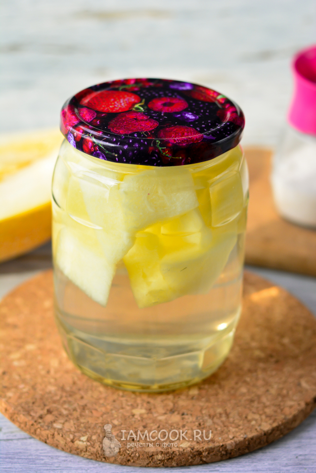 Компот из дыни без стерилизации на зиму готов. Переставьте в прохладную и темную кладовую до холодов. Приятного вам аппетита!
