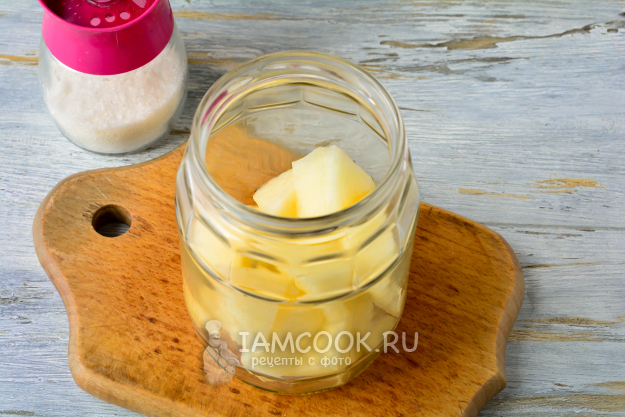 В чистые простерилизованные банки сложите кусочки дыни. Банки стерилизуйте удобным для вас способом - над паром или в духовке.