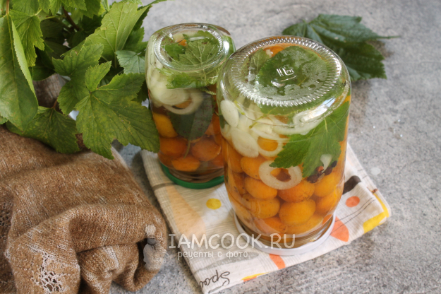 Желтая маринованная алыча на зиму готова. Храните в прохладном затемненном месте.