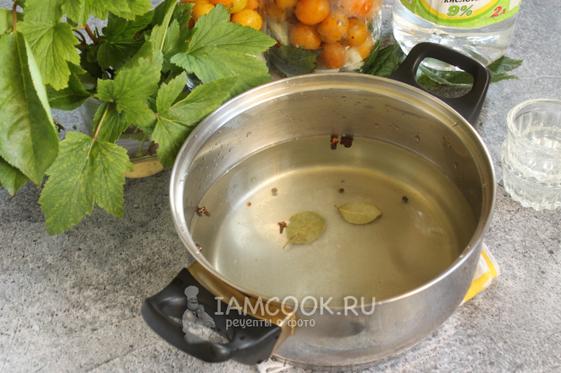 Для приготовления маринованной желтой алычи на зиму возьмите продукты по списку. Набор пряностей уверенно подбирайте по своему вкусу. Откалибруйте зрелые, без гнили и порчи плоды желтой алычи, промойте.