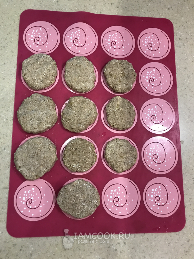 Отрывая кусочки теста мокрыми руками, формируем шайбочки и укладываем на силиконовый коврик.