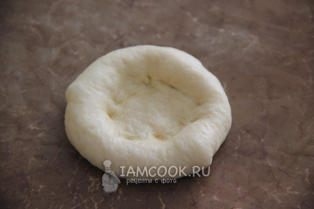 Тесто разделить на небольшие части, из каждой части сформировать круглую ватрушку с бортиком и выложить на противень, застеленный пергаментом или тефлоновым ковриком. Оставить на 20 минут, чтобы края округлились.