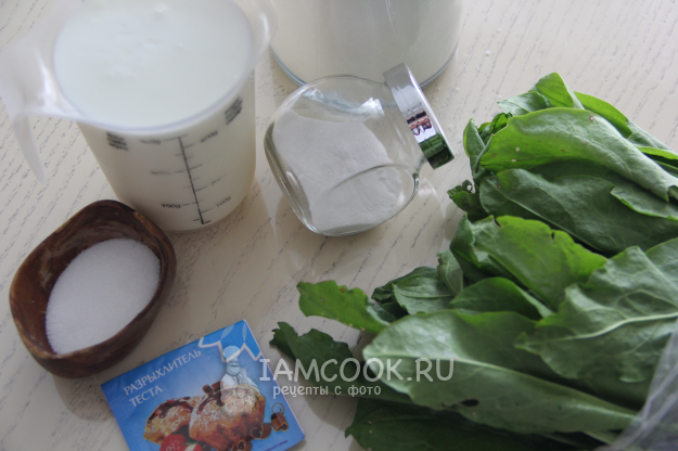 Возьмём продукты для приготовления жареных пирожков со щавелем и яйцом.