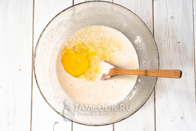 Добавим яйцо. Перемешаем.