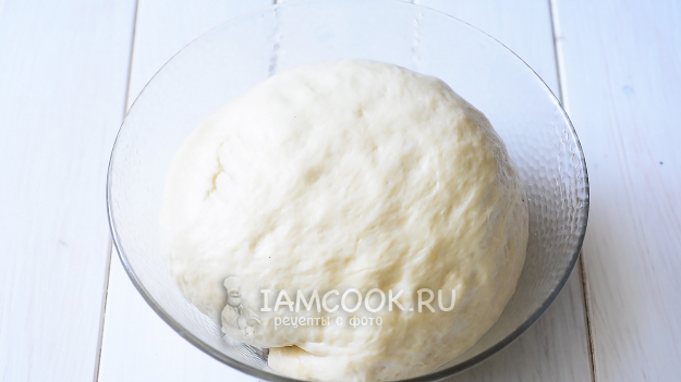 Итоговое тесто должно получиться мягким, и немного прилипает к рукам. Тесто оставим в миске, затянем пищевой пленкой и оставим на 4 часа подходить.