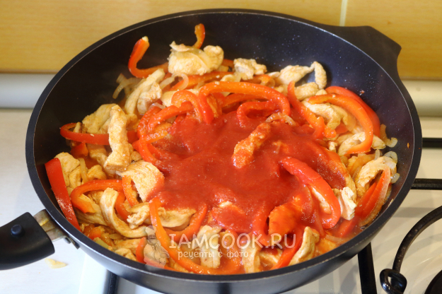 Добавьте перетёртые томаты, доведите до лёгкого кипения.
