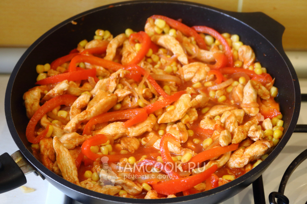 Перемешайте, прогрейте ещё пару минут и снимите с плиты. Начинка для кесадильи готова.