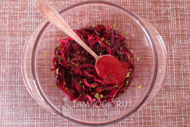 Добавьте в свекольный салат указанное минимальное количество соуса ткемали.