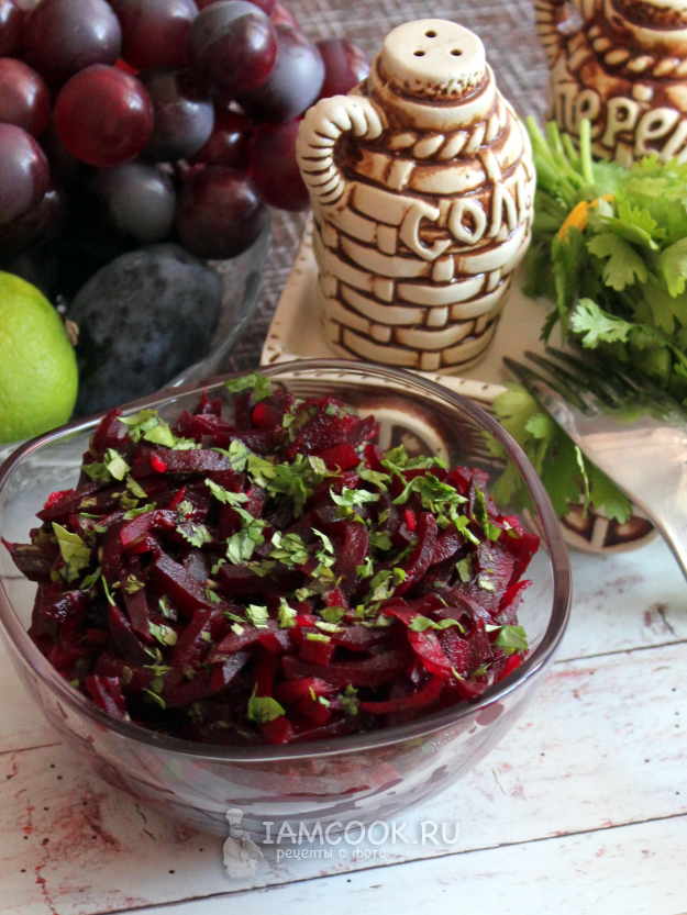 В свой вариант салата из свеклы по-грузински добавила ещё немного свежей кинзы.