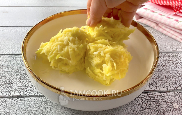 Кабачок вымойте, по необходимости очистите от кожицы и семян. Натрите на крупной терке и отожмите от лишней влаги.