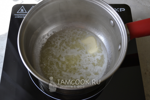 На сильном огне нагрейте, чтобы сливочное масло полностью растаяло.