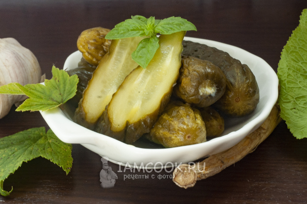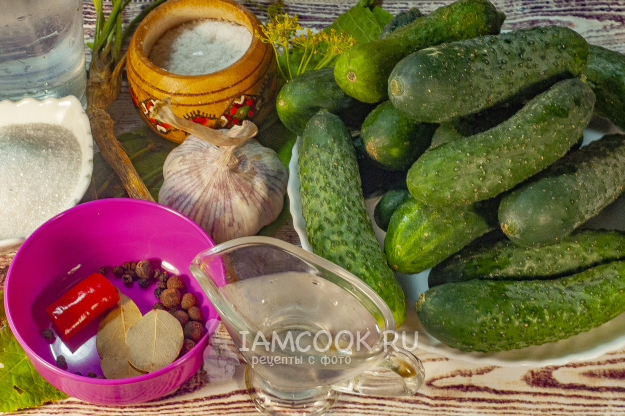 Подготовим необходимые ингредиенты для приготовления маринованных огурцов с хреном на зиму (с листьями и корнем).