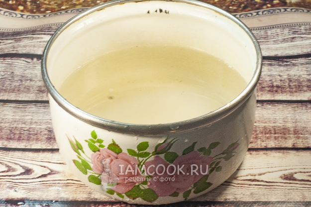 Вскипятим маринад из сахара и соли. В конце кипения добавим уксус.