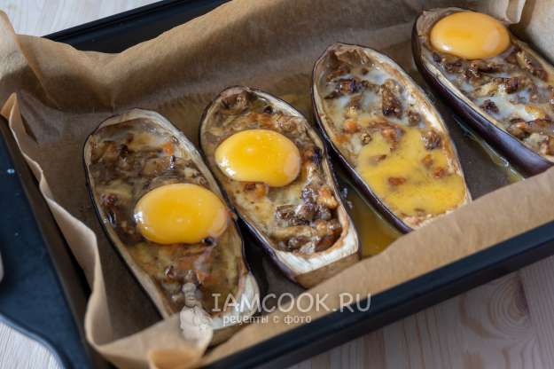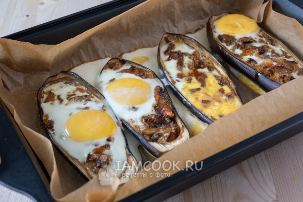 Верните баклажаны с сыром и яйцами в духовку на минут 5-10.