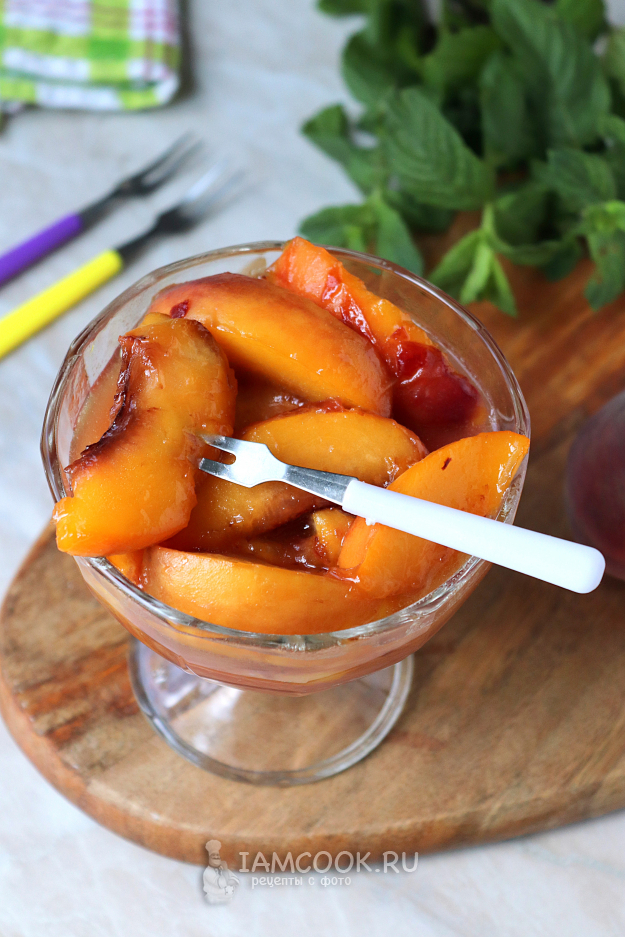 Вот и готовы наши карамелизованные персики. Переложите их в красивую пиалу и подавайте к столу в качестве самостоятельного десерта или в сочетании с мороженым, йогуртом, кашами и т.п.