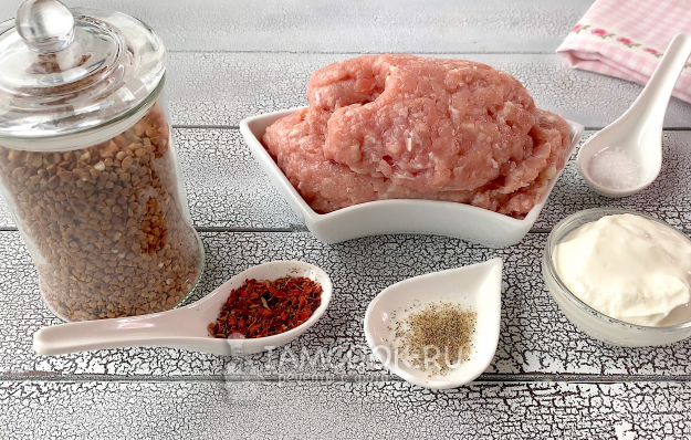 Итак, подготовьте все нужные ингредиенты и сразу приступайте к приготовлению ёжиков с гречкой на сковороде.