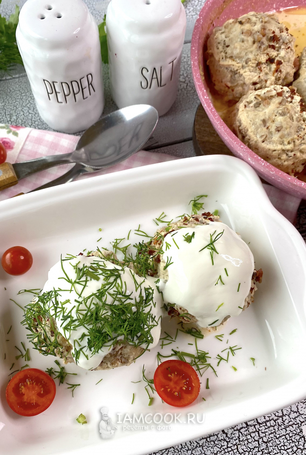 На стол ежики подайте в горячем виде со сметаной и свежей зеленью.
