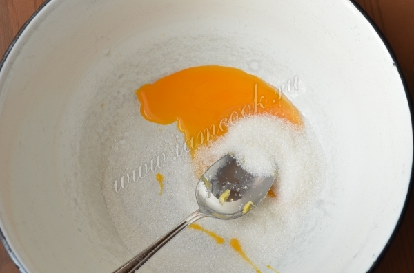 Добавить к желткам сахар, растереть.