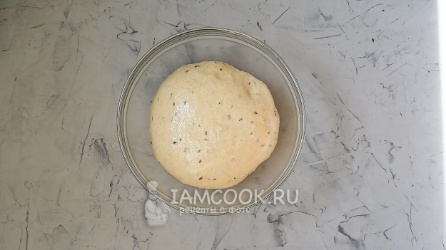 Вновь миску с тестом затягиваем пищевой пленкой и оставляем в покое еще на 30 минут.