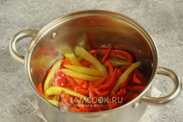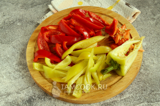 Вымойте спелые, без гнили, перцы. Нашинкуйте любым удобным способом (удалите семена).