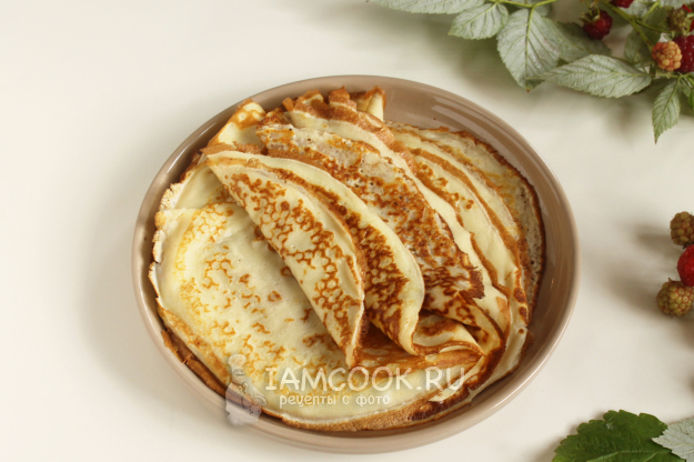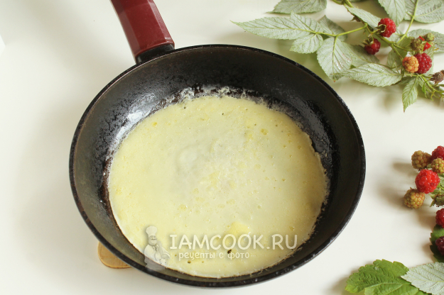 Пеките блины на раскаленной, чуть промасленной сковороде.