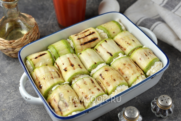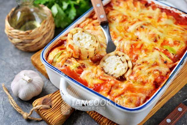 Рулетики из кабачков с творогом, запеченные в духовке, готовы.