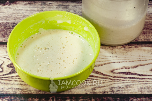 Муку соединяем с небольшим количеством сливок. Размешиваем так, чтобы не было комочков. Добавляем остальные сливки, перемешиваем.
