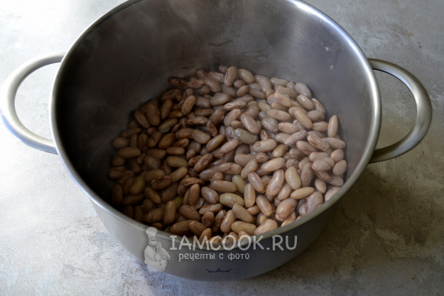 У меня фасоль свежая, поэтому я сварила ее до готовности в чуть подсоленной воде. С готовой фасоли слейте воду.