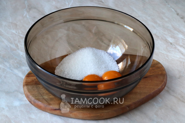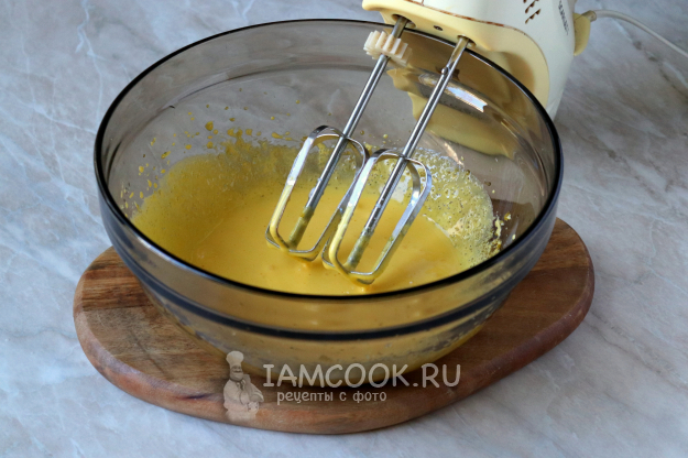 Желтки разотрите с сахаром до побеления, также с помощью миксера.
