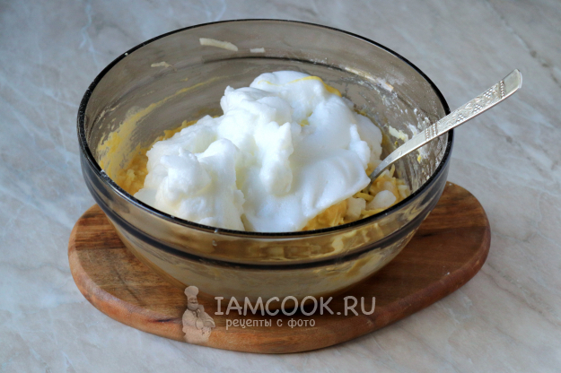 В самом конце введите в тесто взбитые яичные белки.