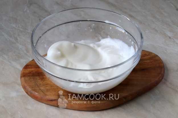 С помощью миксера взбейте белки до пышной стойкой массы.