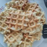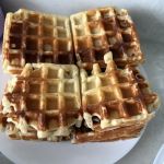 Разогрейте вафельницу и выложите примерно по 1,5-2 столовых ложки теста на каждую вафлю.