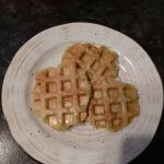 Панели вафельницы смажем растительным маслом с помощью силиконовой кисточки. Включим вафельницу разогреваться и выложим на каждую панель по 1-2 ст.л. картофельного теста. Готовьте венские вафли из картофеля в соответствии с инструкцией к вашему устройству. Я выпекала одну партию вафель 5 минут.